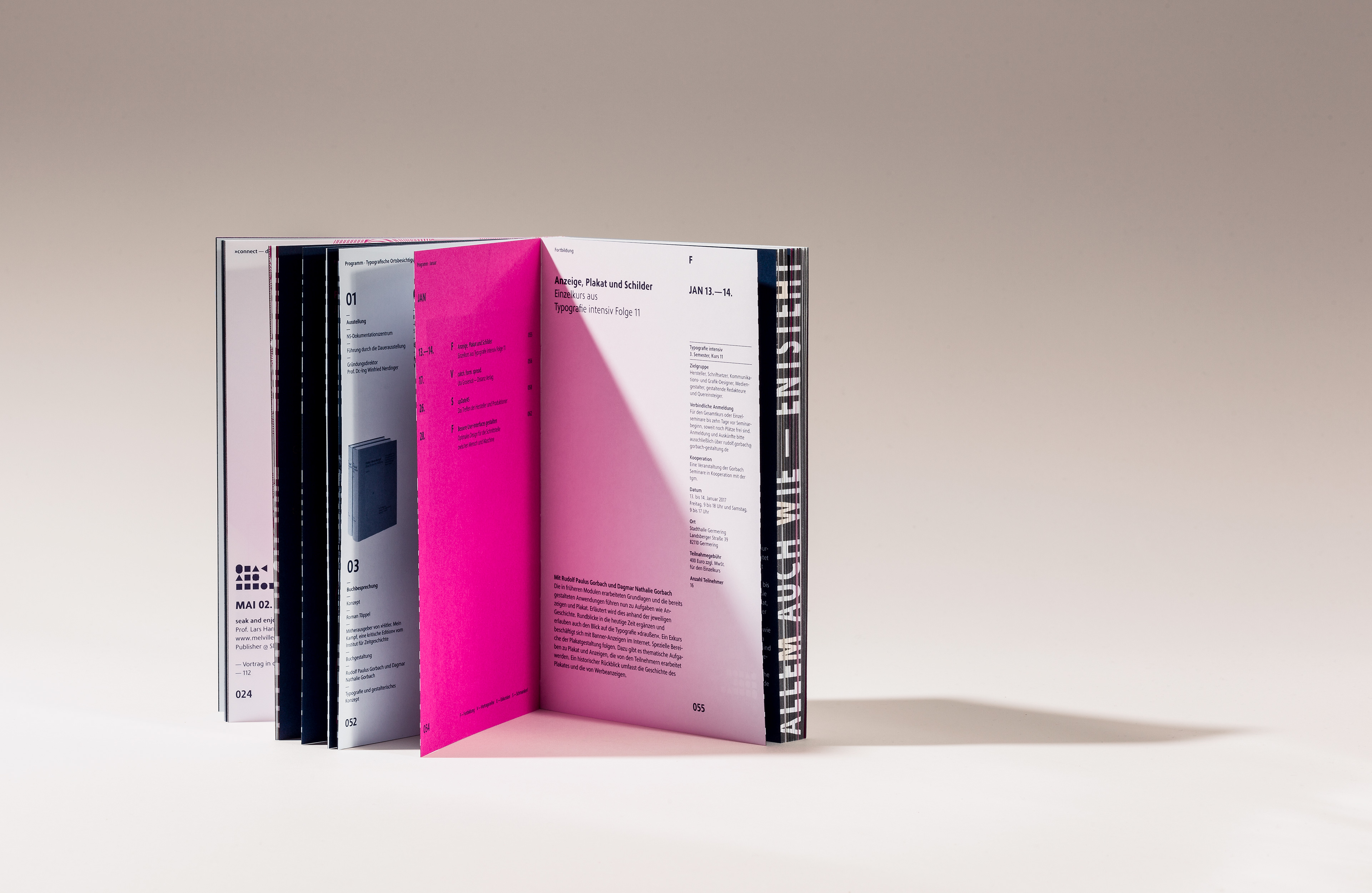 Einer der Highlights des Programmangebots ist die Vortragsreihe, die im Laufe der Zeit und zur Freude der Münchner Kreativszene Designgrößen wie Stefan Sagmeister, Eike König, Mirko Borsche, Mario Lombardo, Erik Spiekerman, Paule Scher, Ruedi Baur, Fons Hickmann, Amir Kassaei, Joachim Sauter, Oliviero Toscani, Niklaus Troxler, Gerard Unger, Kurt Weidemann und viele andere auf die Bühne gebracht hat.